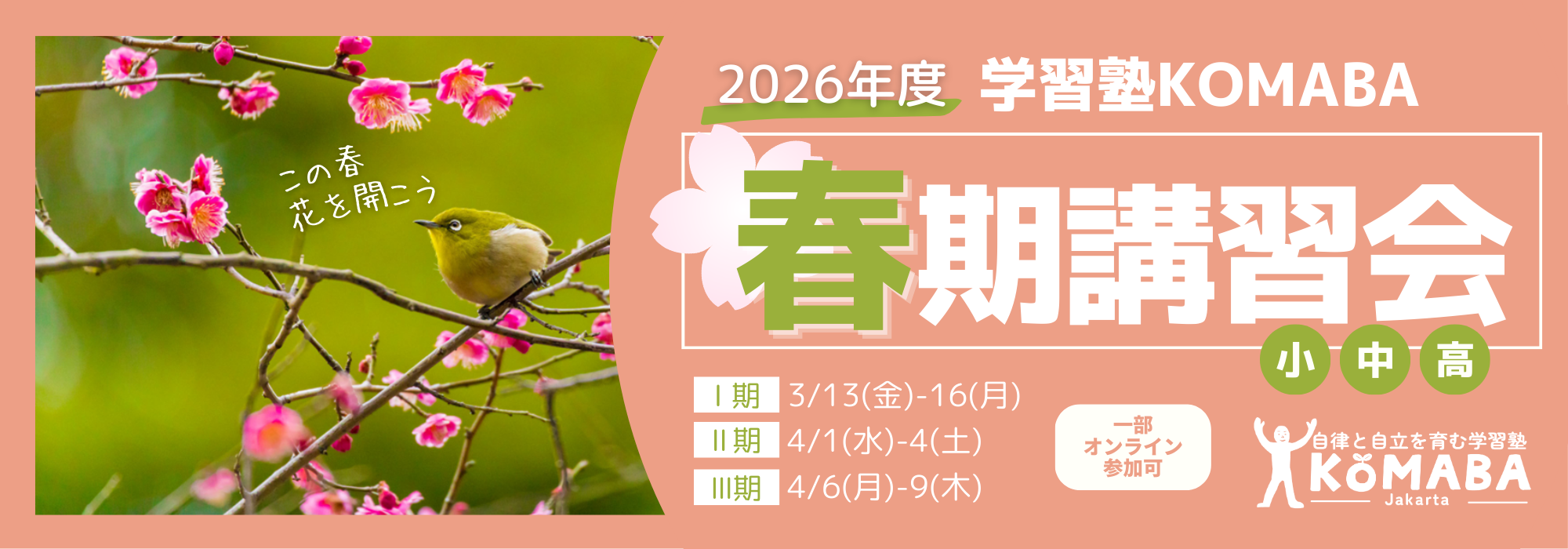 学習塾KOMABAでは以下の通り春期講習会を実施いたします。 一部の学年と期間で一時帰国によるオンライン参加も可能です。 詳しい資料はページ下部よりご請求いただけます。どうぞお気軽にお問い合わせください。